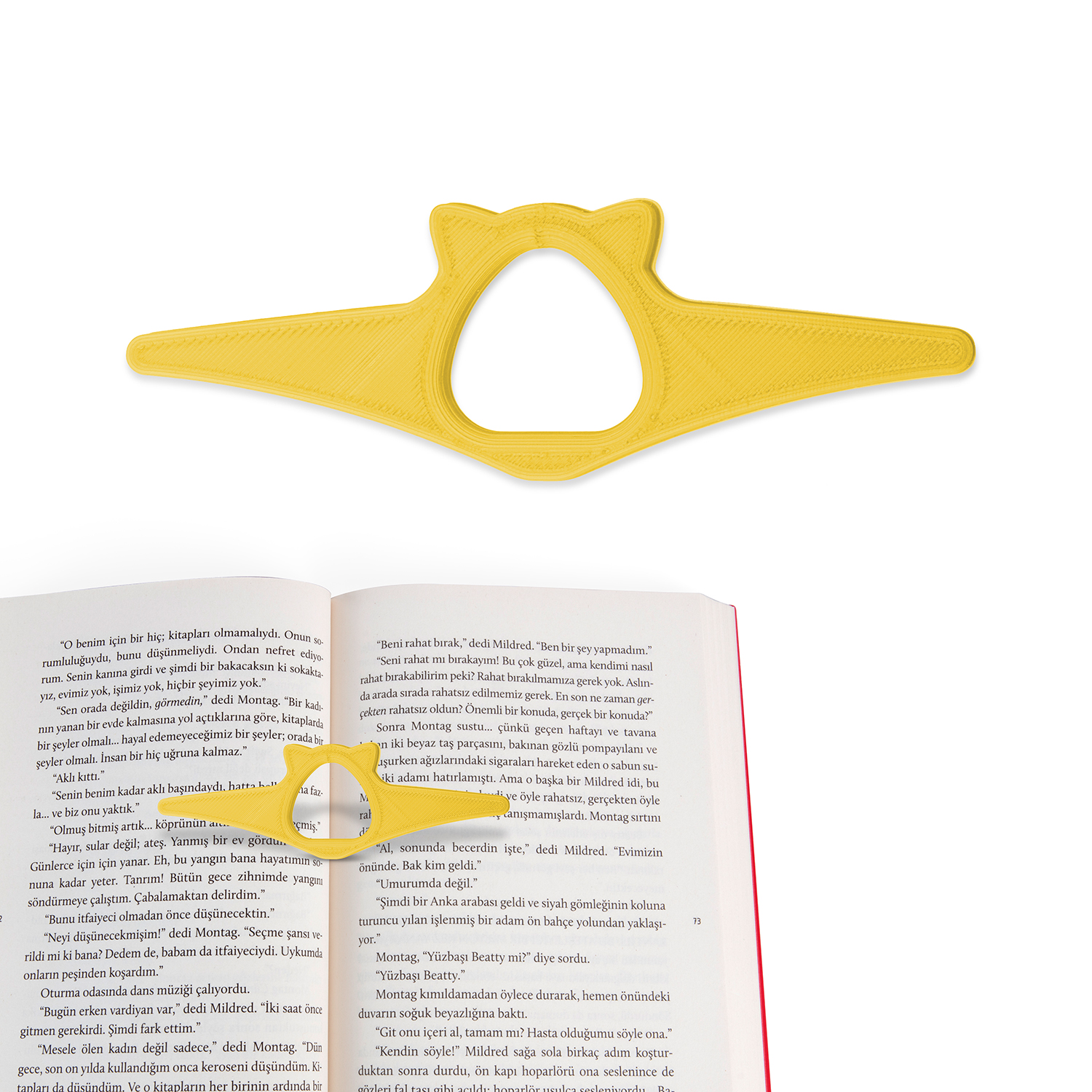 3D Kitap Ayracı – Kitap Okuma Yüzüğü Kedi Modelli – Sarı