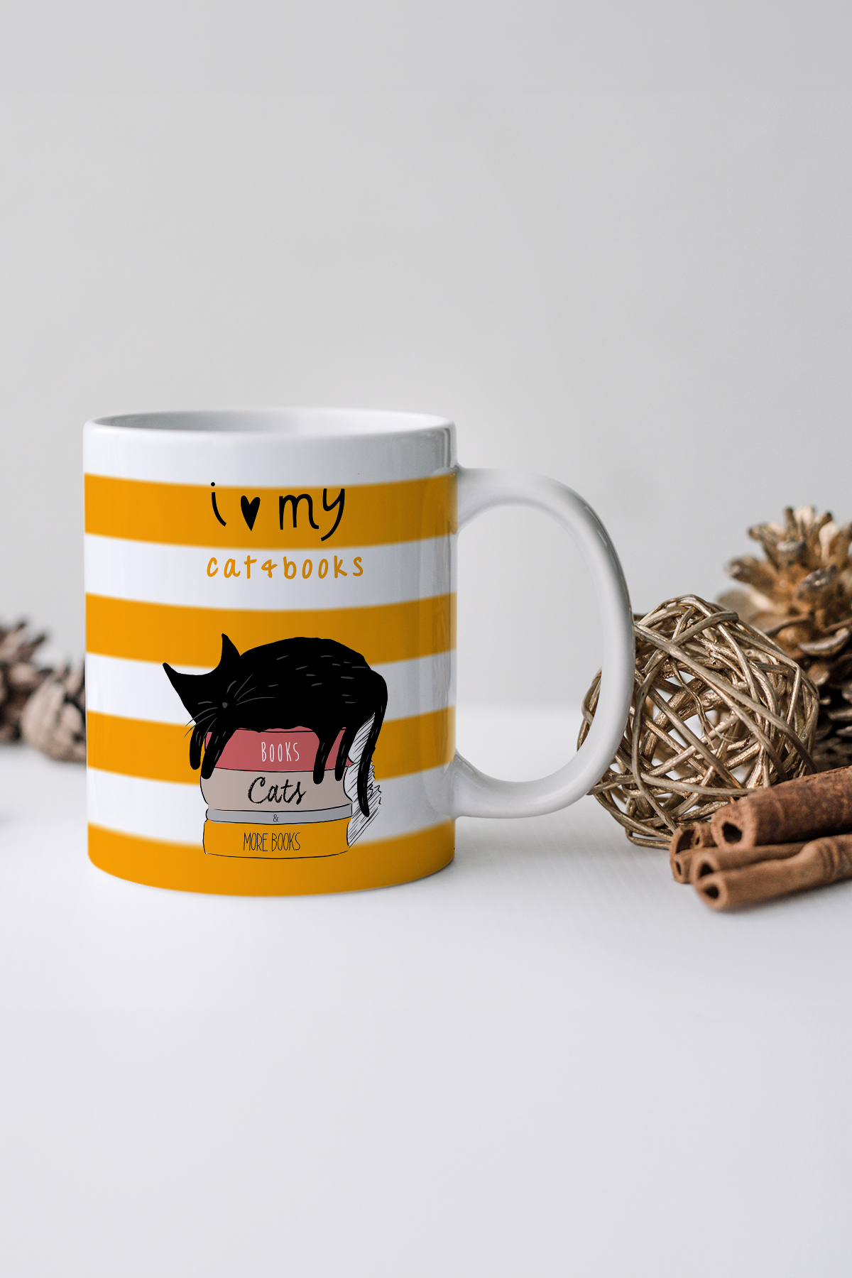 Kitaplar Kediler Tasarım Porselen Kupa Fincan Bardak